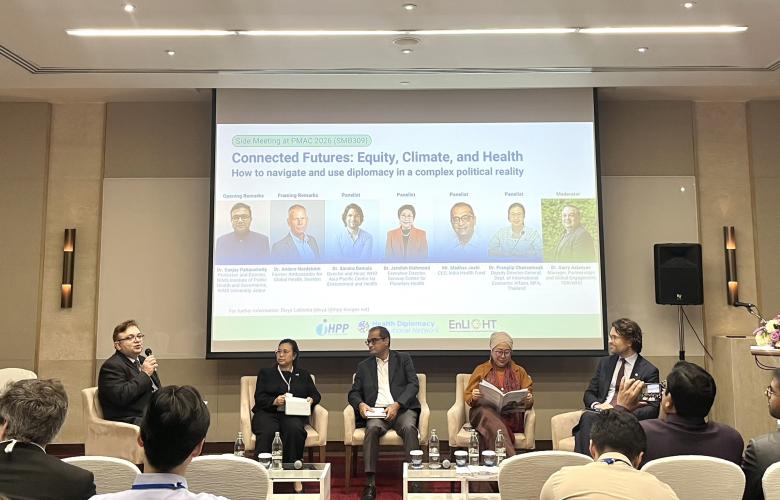 Organised by the International Health Policy Program (IHPP) Foundation in collaboration with the Health Diplomacy Institutional Network, this Prince Mahidol Award (PMAC) 2026 side meeting discussed the alignment of climate change, health, equity, and innovation across governance and multilateral systems.